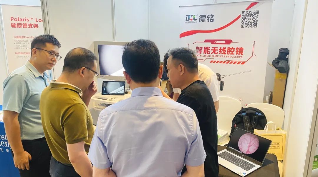 會議期間,德銘攜智能無線腔鏡全程精彩亮相。眾多泌尿外科領(lǐng)域醫(yī)學大咖親臨德銘展位,與工作人員細致交流無線腔鏡產(chǎn)品性能及臨床應用,并主動操作試用。智能無線腔鏡突破傳統(tǒng),創(chuàng)新實現(xiàn)微創(chuàng)診療裝備的微型化、無線化和智能化,產(chǎn)品臨床應用前景獲得了到訪嘉賓的一致贊揚。