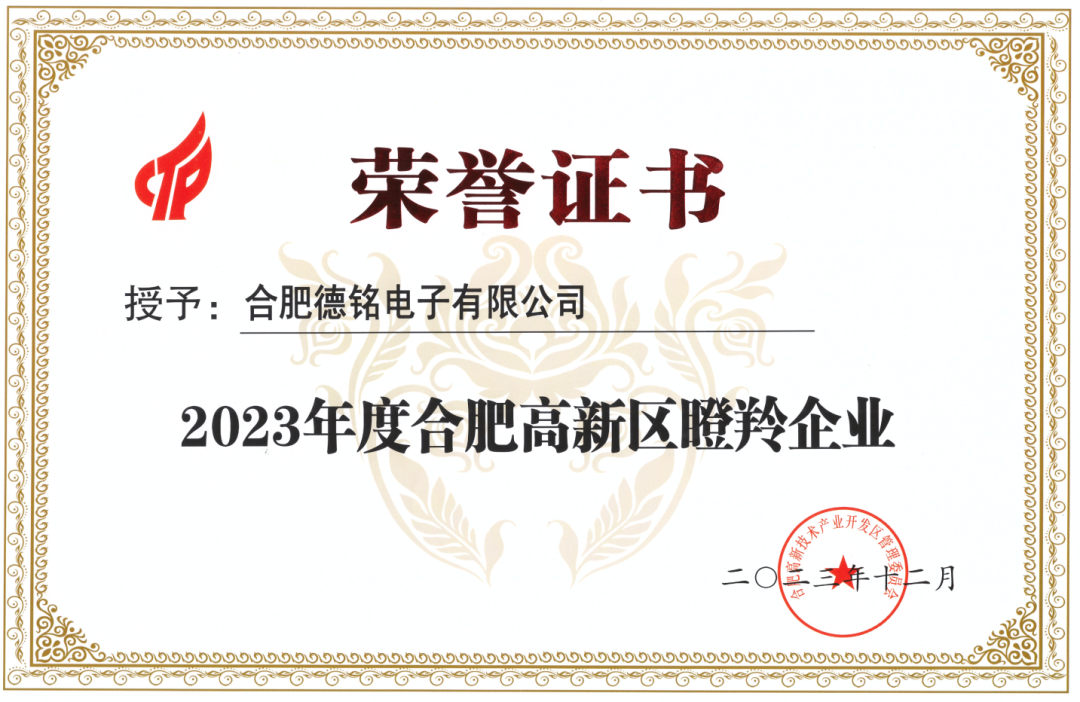 近日,德銘電子被授予“2023年度合肥高新區(qū)瞪羚企業(yè)”榮譽稱號,瞪羚企業(yè)是指成長速度快、創(chuàng)新能力強、專業(yè)領(lǐng)域新、發(fā)展?jié)摿Υ蟮钠髽I(yè),并且具有綜合效益突出、行業(yè)影響力大、社會誠信度高、示范帶動性強等特點。每一次榮譽的獲得,既是德銘電子實力的展現(xiàn),亦是德銘電子拼搏前行、攀峰越嶺的記錄。